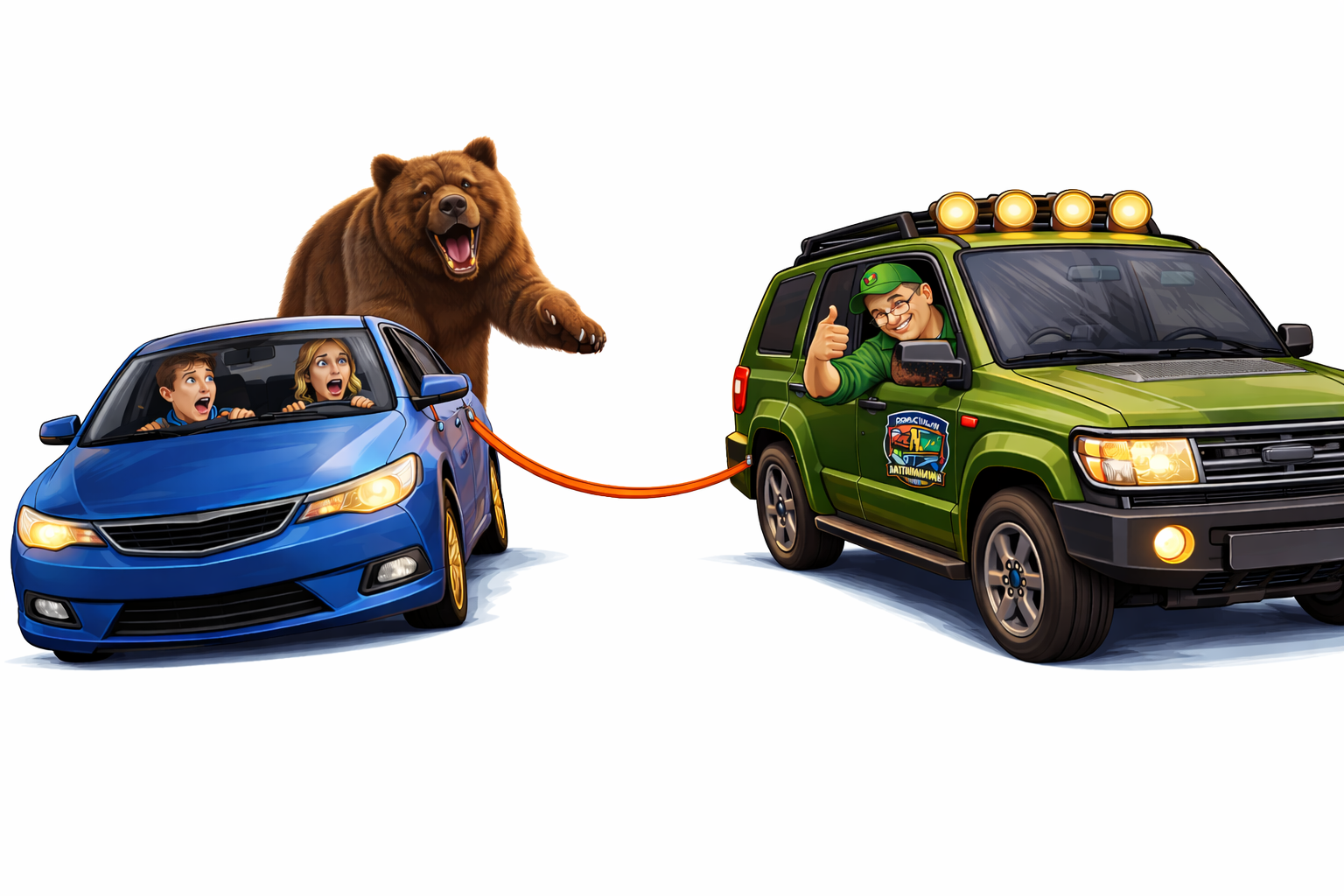Мастер возьмет на трос и дотащит куда скажешь: до дома, до сервиса, до заправки.